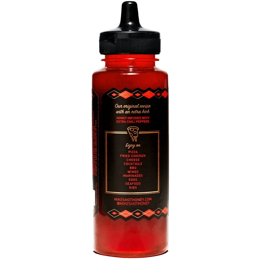 Create the excitement found at restaurants in your store. Mike’s Hot Honey Extra Hot 12oz squeeze bottles are a great addition for your deli, hot bar, or honey aisle.